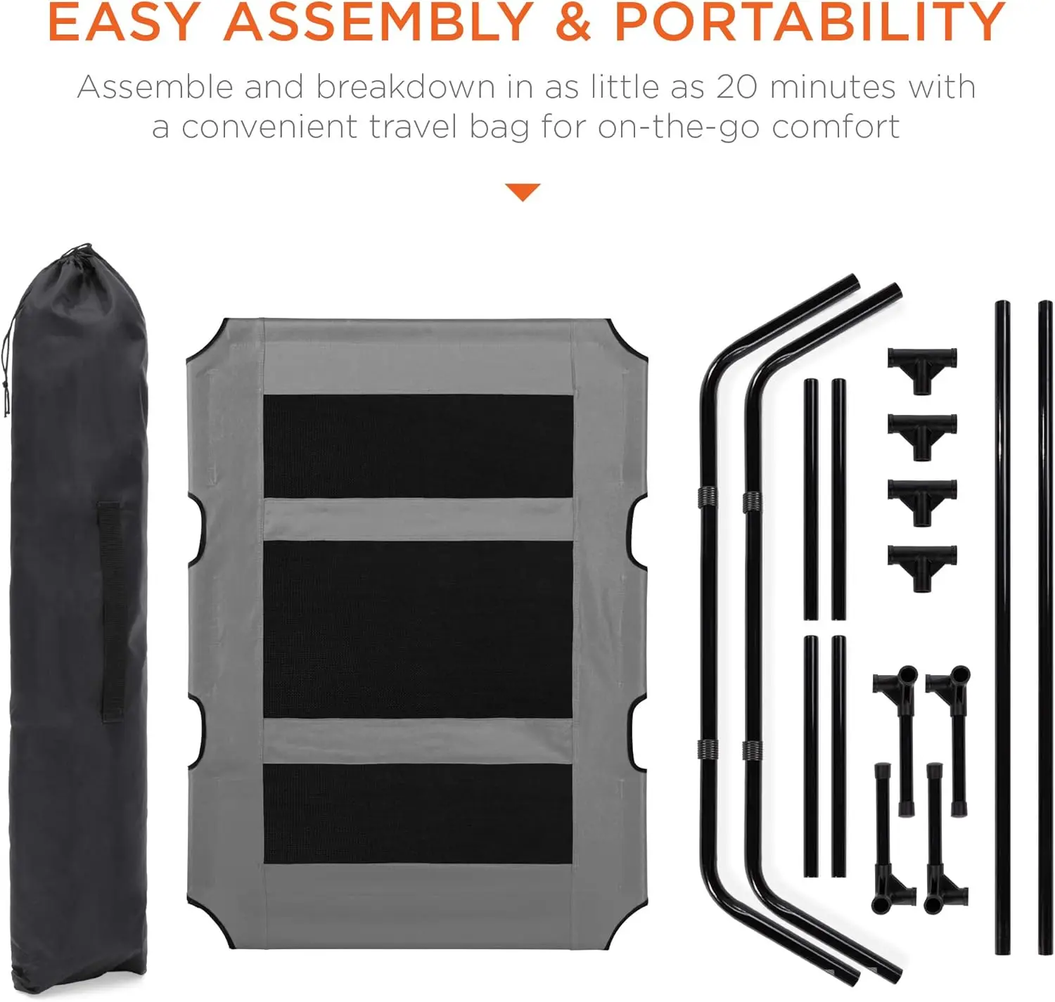 - EASY ASSEMBLY & PORTABILITY: Put away your tools and set up this pet bed in as little as 20 minutes, then quickly break it down into the included travel bag for a fun outing; OVERALL DIMENSIONS: 48"(L) x 36"(W) x 45"(H); Weight Capacity: 100 lbs.