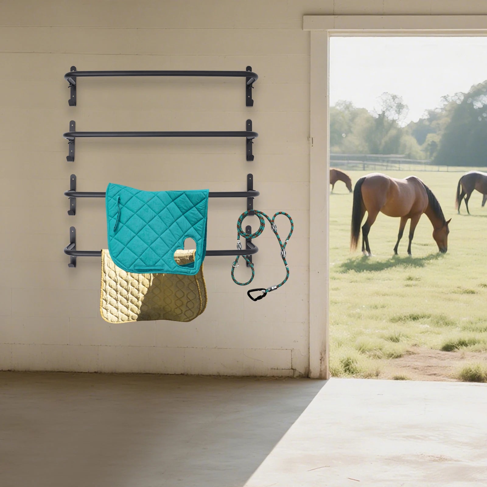 Designed for equestrians, this premium saddle blanket rack delivers high durability through its robust construction and high-class steel, offering the ideal storage solution that maximizes space efficiency while keeping your saddle blanket neatly organized. It ensures your saddle blankets remain well-stored and easily accessible whenever needed.